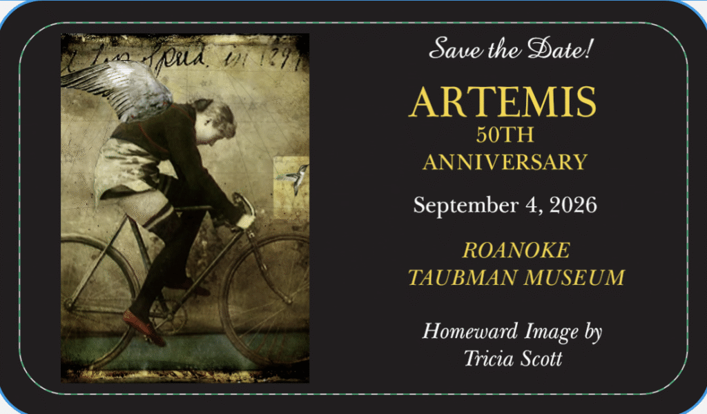 Now in its 49th year of showcasing artists and writers of the Blue Ridge Mountains and beyond, Artemis Journal highlights the creative voices who uphold the values of the Greek lunar goddess for which the journal was named. As the archetype of the mother goddess, Artemis was the protector of wild animals, the wilderness, young women, and childbirth. She was known as a carrier of light.
